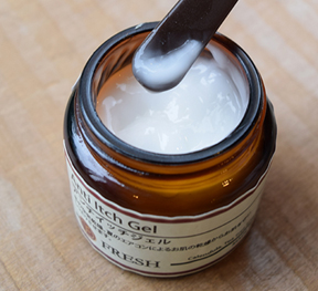 質感はぷるぷる、とろっとして、みずみずしいジェル状のクリーム。 少量でも伸びが良く、使用後は保湿をしつつもサラサラとベタつかない。 ミツロウ系のクリームが重たくて苦手、ベタつきが苦手な方でもお使いいただけ、 乾燥の改善にも効果的です。